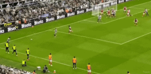 比赛开打不久,客场作战的阿森纳反客为主,迅速进入状态,围攻纽卡斯尔,好在波普的高接低挡表现出色,力保球门不失;随后,特罗萨德小角度抽射击中立柱,枪手错失打破僵局良机,紧接着争议一面出现,新援哲凯赖什突入禁区被波普放倒,裁判没有任何表示,引发阿森纳替补席一片不满。正所谓大难不死必有后福,比赛第34分钟,托纳利开出战术角球,沃尔特马德高高跃起,头球砸进球门,纽卡斯尔1-0领先。